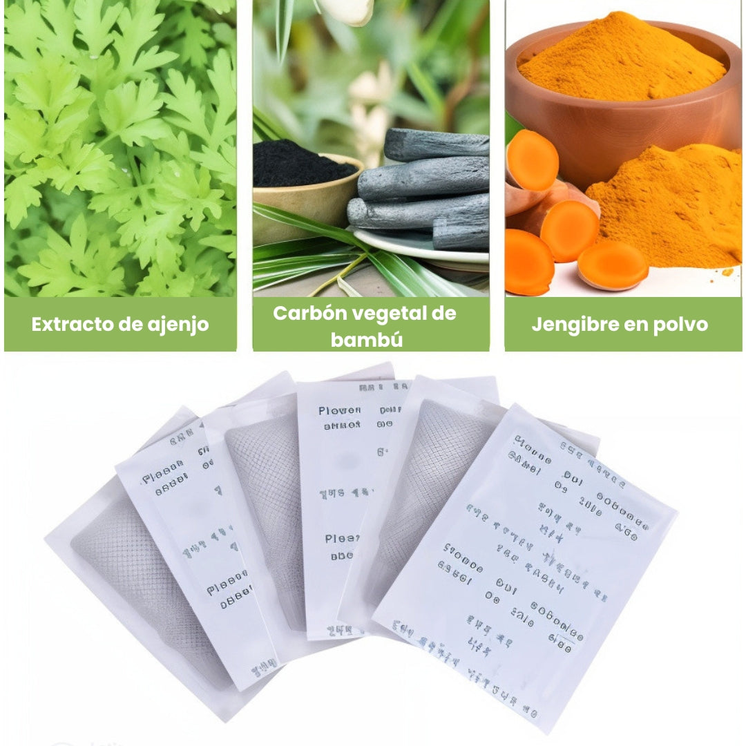 Almohadillas de hierbas para pies que liberan toxinas, mejoran el metabolismo, alivian dolores y calman estres y ansiedad. Compatibles para todas las personas y promueven la relajación.