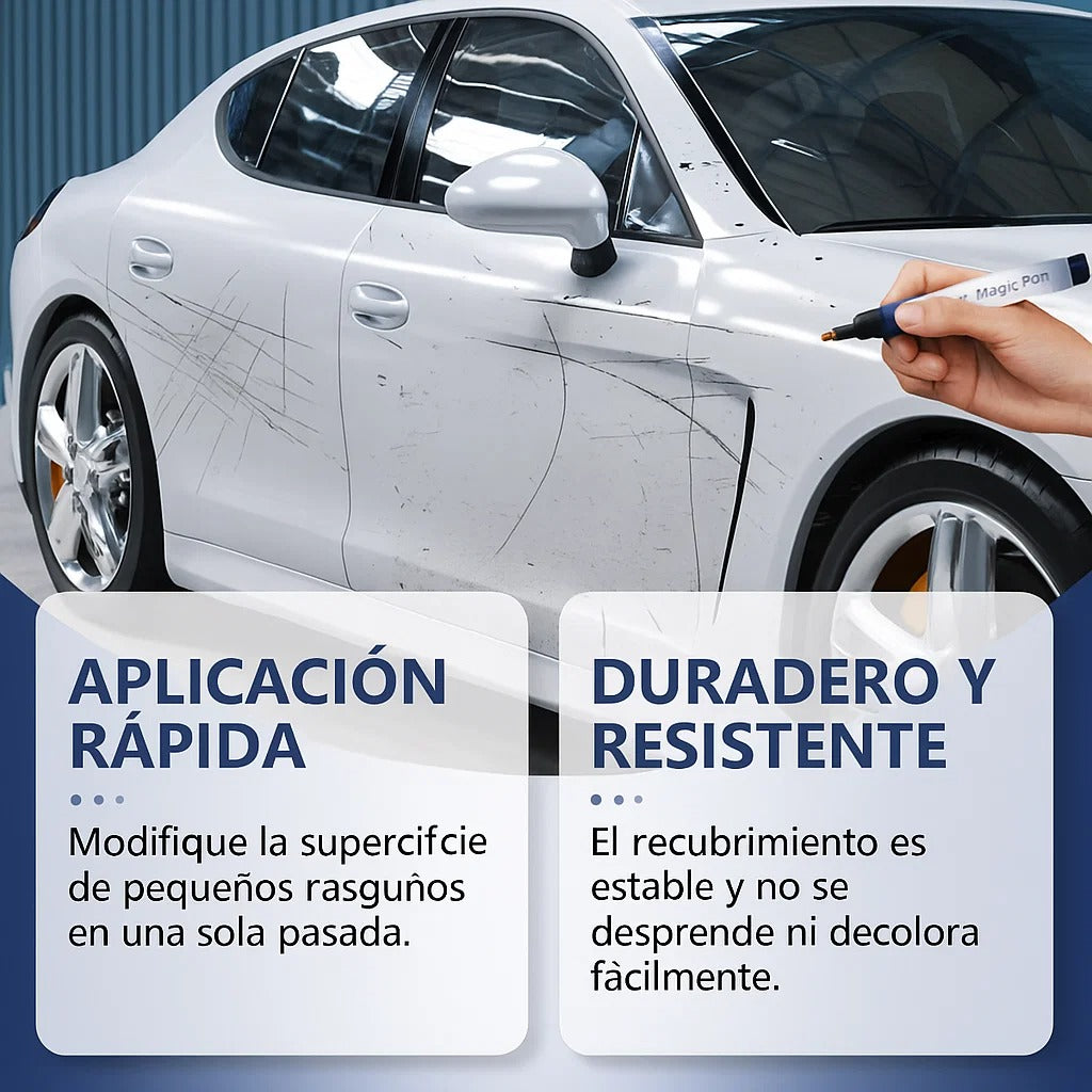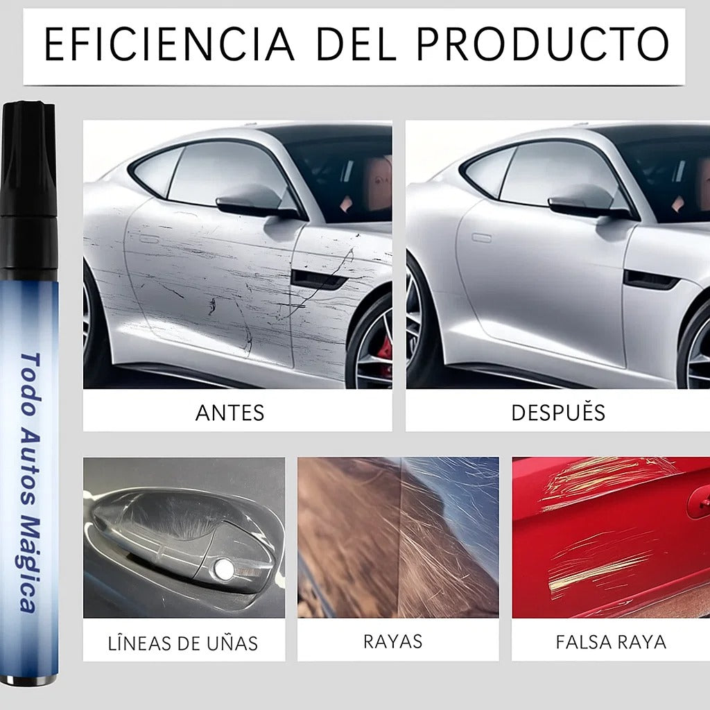 El Magic Pen utiliza una fórmula especial que se adapta al color del auto y se fusiona con la pintura, logrando una reparación invisible y duradera.