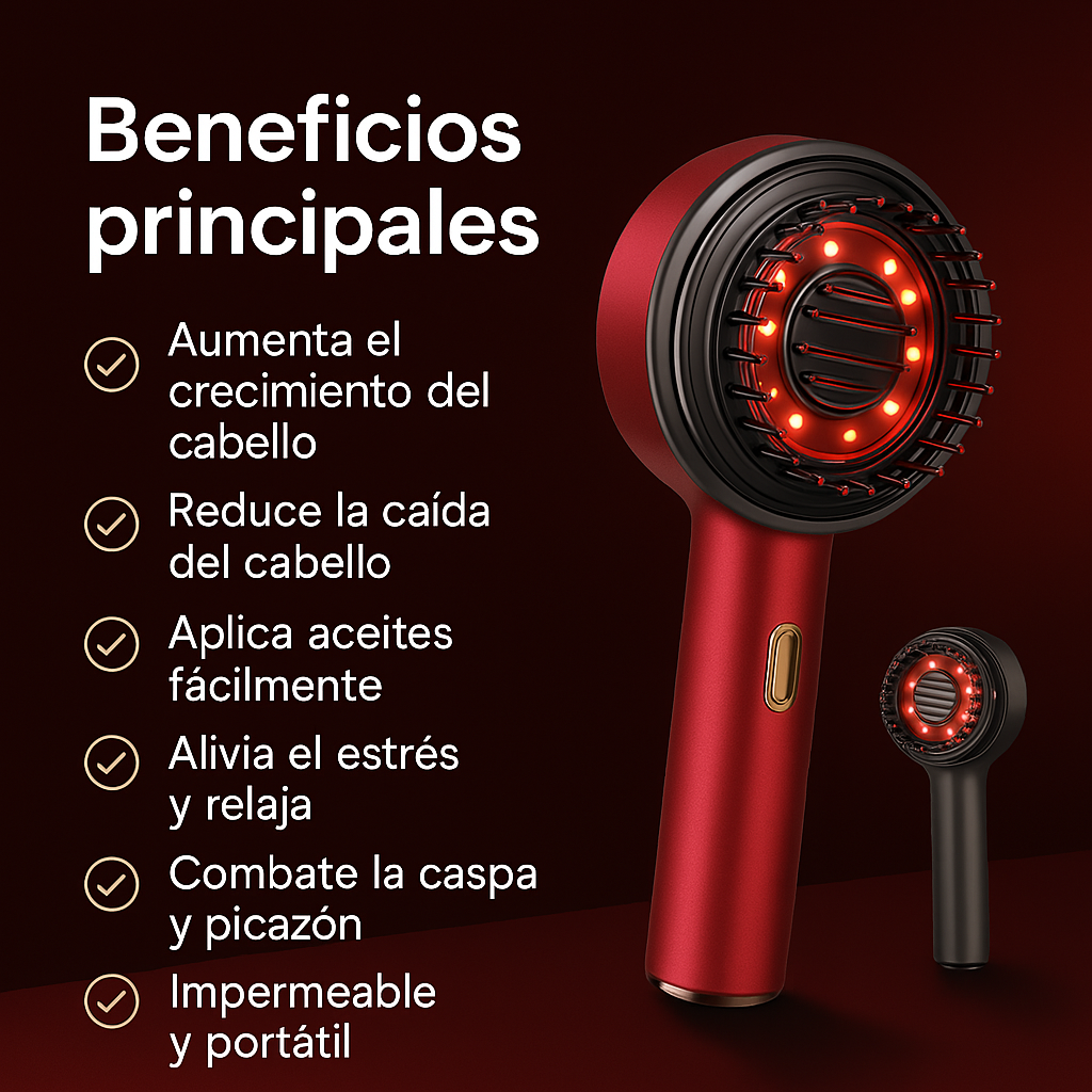 Sabemos lo que se siente perder confianza al ver tu cabello debilitarse. Por eso creamos HairLuxe™, una herramienta que combina masaje vibratorio y terapia de luz roja de baja intensidad (LLLT) para estimular los folículos, mejorar la circulación y fortalecer el crecimiento capilar.