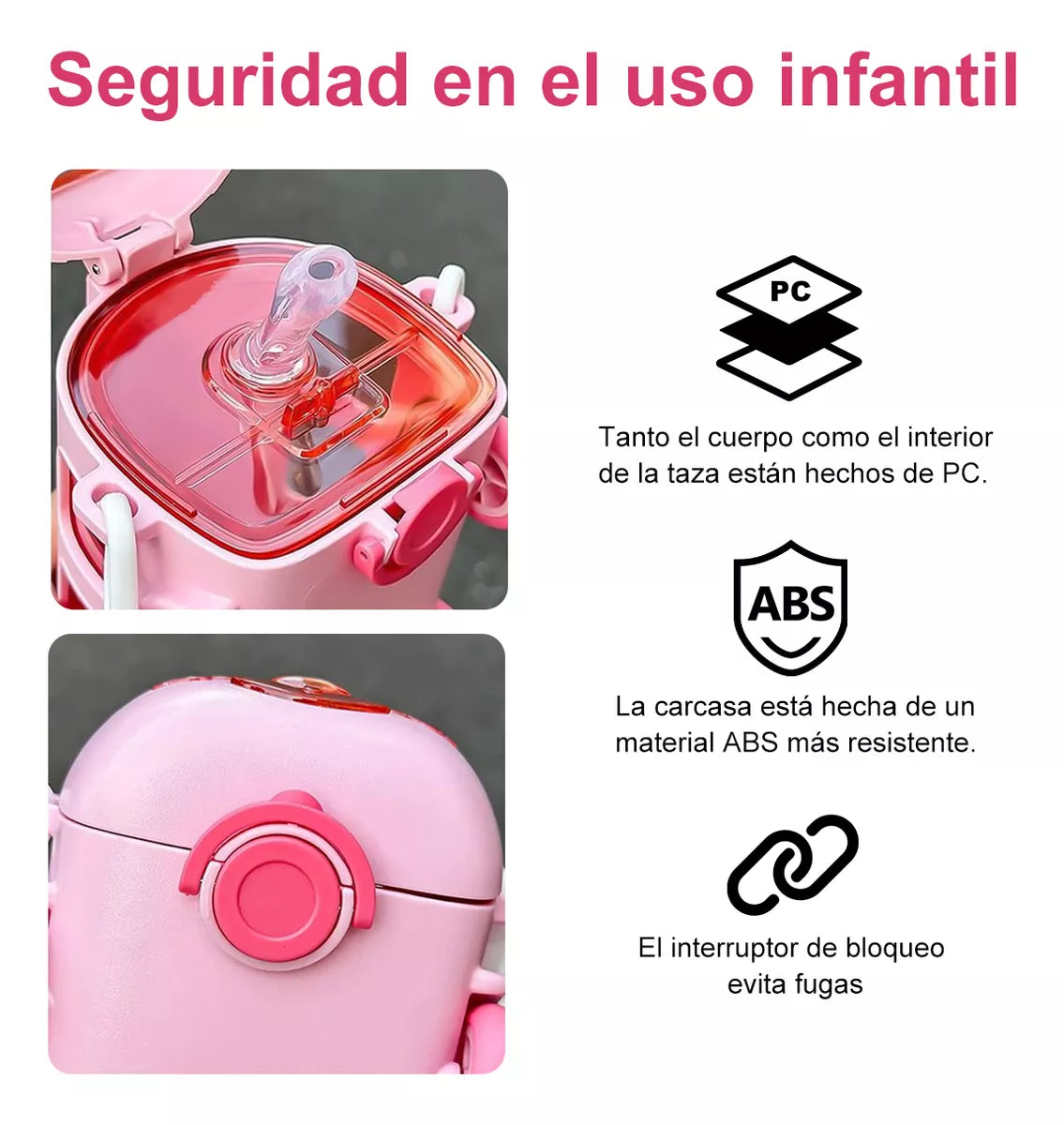 ✅ PC (Policarbonato): material resistente y libre de BPA, ideal para botellas reutilizables.