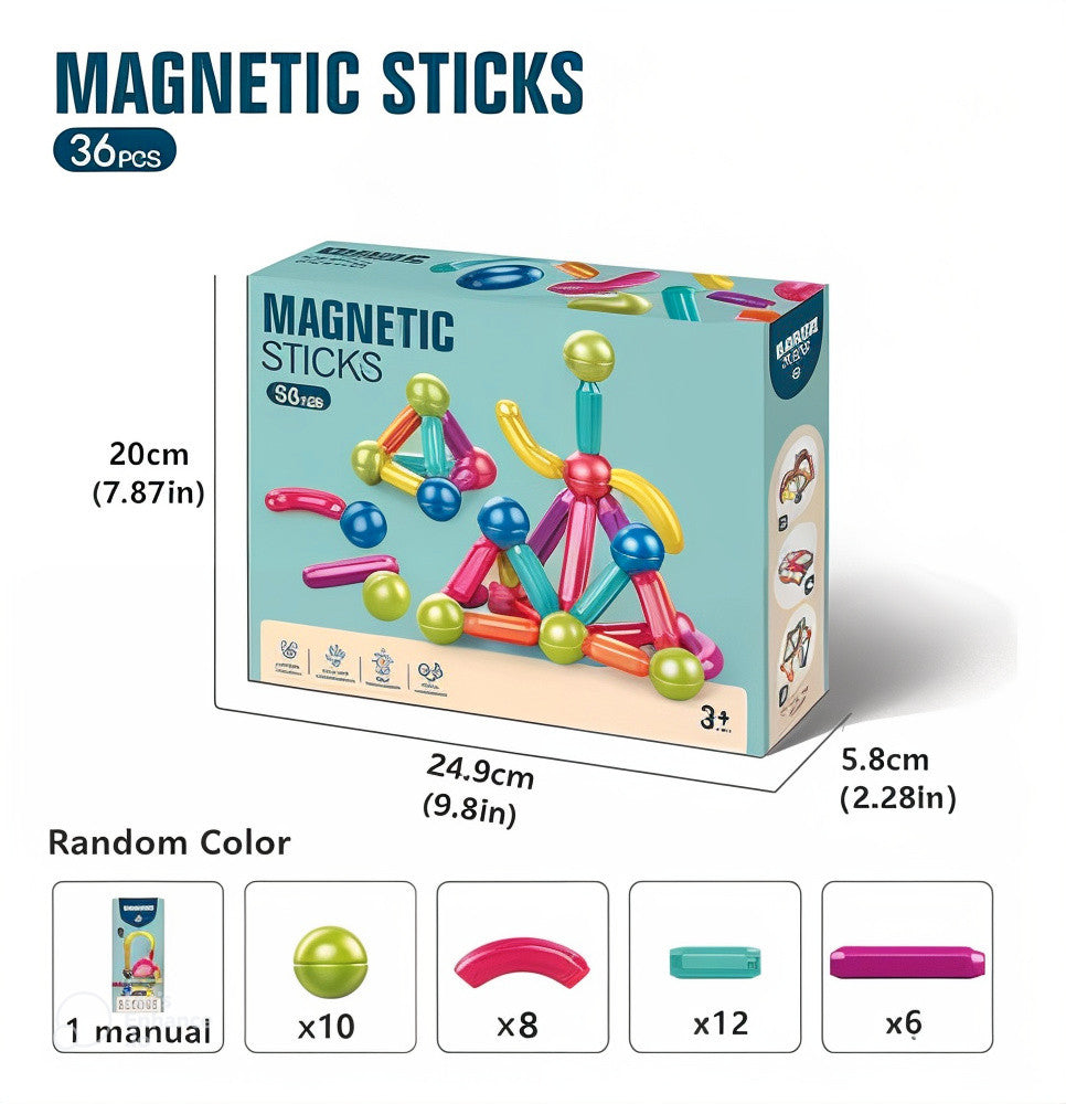 Nuestro juego de bloques magnéticos educativos Neuromag™️cuenta con 36 piezas, que incluyen bolas, barras curvas, barras largas y barras cortas. Permite ensamblar una gran cantidad de bloques en diferentes formas.