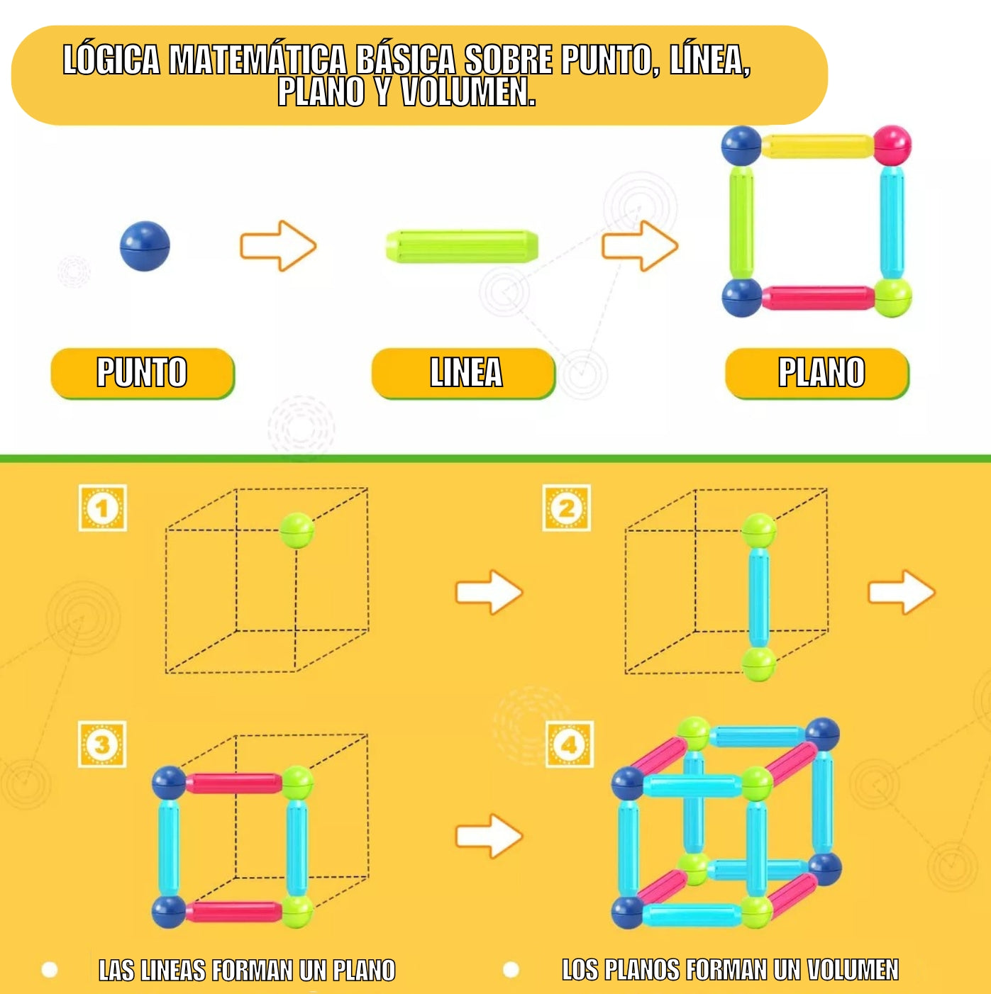 ✅ Variedad de piezas: Incluye 10 bolas de metal, 12 varillas magnéticas cortas, 6 curvadas y 8 largas para crear múltiples estructuras.